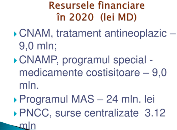 Cu alte 9 milioane de lei, potrivit aceluiași raport, tot alocate de către CNAM au fost cumpărate medicamente costisitoare. Alte detalii despre aceste medicamente nu au fost prezentate. Instituția a mai obținut 24 de milioane de lei din diverse proiecte internaționale, dar nici aici nu este precizat pentru ce fel de servicii sau proiecte au venit banii. Alte 3,12 milioane de lei, Institutul Oncologic i-a obținut din bugetul centralizat al țării, banii fiind folosiți pentru aplicarea Programului Național de Control al Cancerului (PNCC). Iarăși, și această informație este generală.