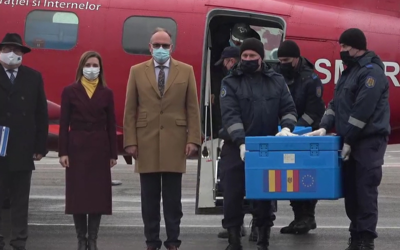 Maia Sandu: „Eu sunt foarte bucuroasă că vaccinurile au ajuns la Chișinău. Suntem foarte bucuroși și mulțumim României pentru vaccinuri. Această primă tranșă este importantă, pentru că va merge spre medicii care muncesc în prima linie. Le mulțumesc personal medicilor, asistenților medicali pentru tot ce fac. și totodată îi rog pe cetățenii RM să fie în continuare vigilenți și să respecte regulile să și nu admitem îmbolnăvirea masivă. Am discutat cu Ministerul Sănătății care a spus că chiar de luni va începe administrarea vaccinului. Este doar prima tranșă. Eu sunt gata să mă vaccinez oricând, dar cred că vaccinul trebuie să meargă la oamenii care tratează pacienții cu Covid în primul rând. Eu sunt gata să mă vaccinez oricând”.