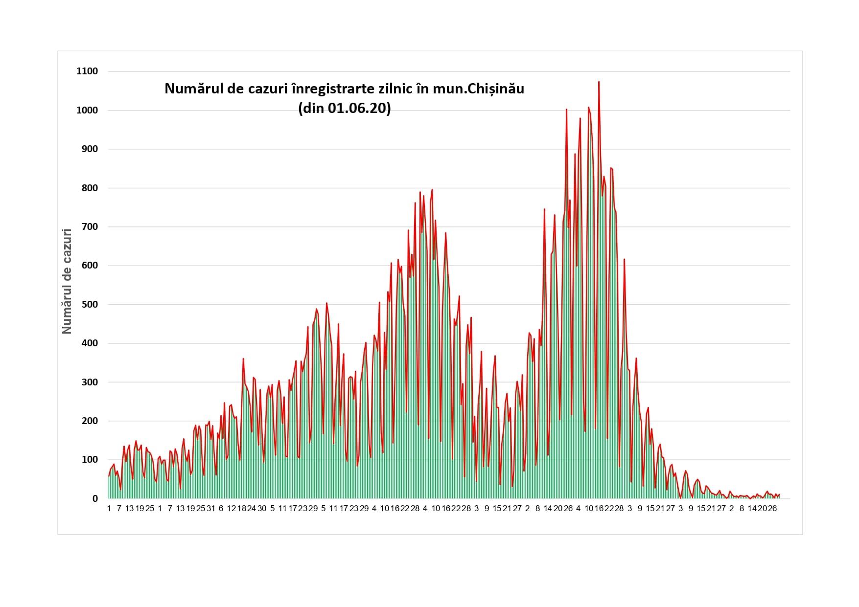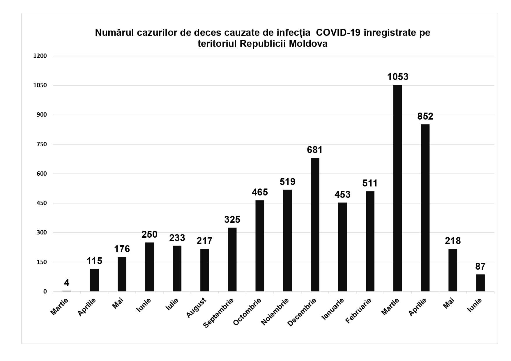 În luna iunie s-au înregistrat de 3 ori mai puține cazuri de Covid-19 decât în luna mai și de aproape 6 ori mai puține, în comparație cu aceeași lună a anului trecut. Dintre cele 1.428 de cazuri înregistrate în luna iunie, 591 sau echivalentul a 42% au fost înregistrate în regiunea transnistreană, 271 - 15% - în Chișinău și 620 – 43% - în restul regiunilor Moldovei.