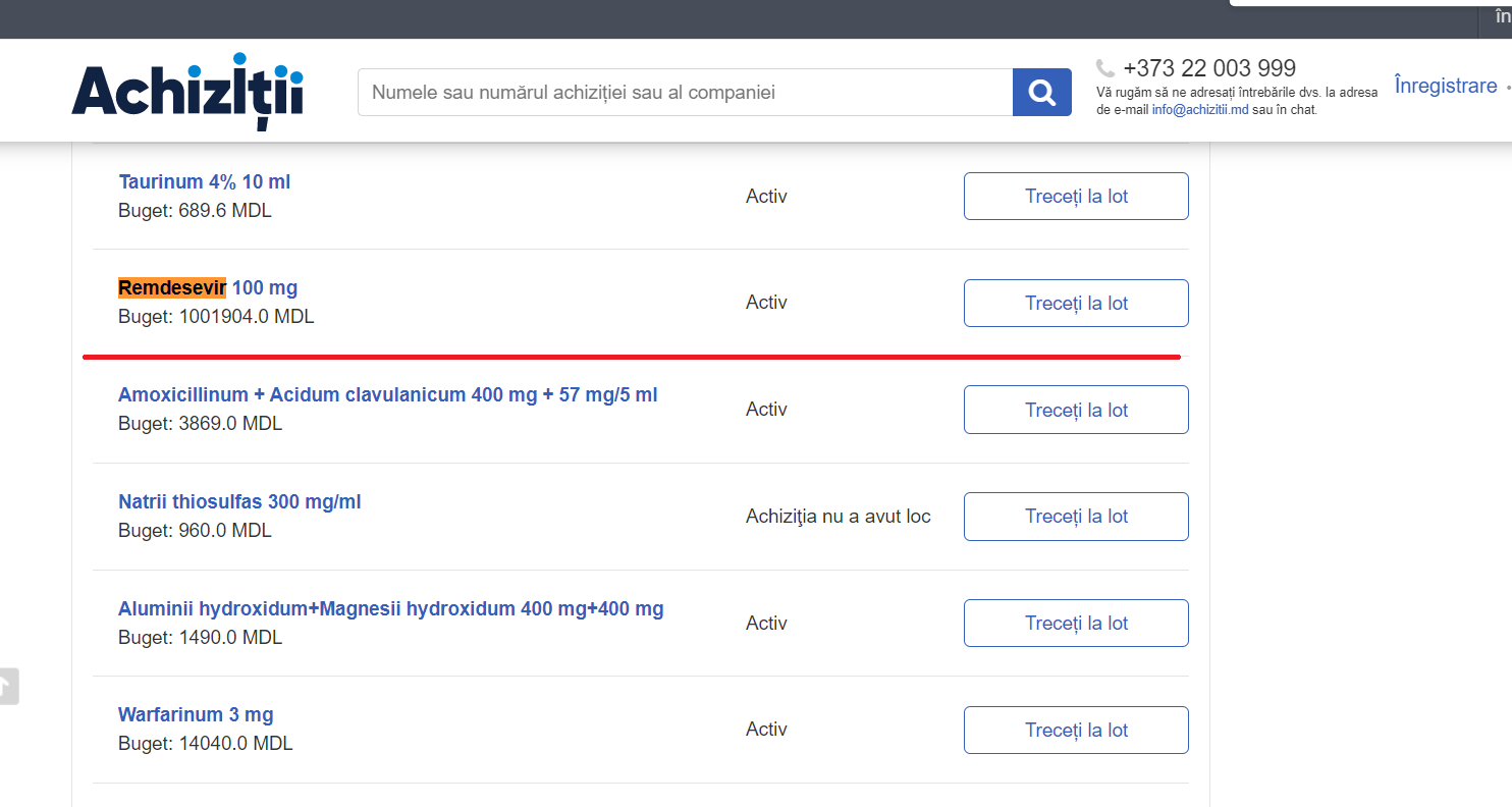 „Remdesivir este un medicament neautorizat în Moldova. Pentru importul și distribuirea unui produs neautorizat, compania trebuie să obțină două acte permisive: autorizația de import care se eliberează de către Agenția Medicamentului și Dispozitivelor Medicale în termen de până la 30 zile lucrătoare și certificatul de calitate al medicamentului care se eliberează tot de către AMDM în termen de până la 40 zile lucrătoare. Termenul de valabilitate al contractului la momentul procedurii de negociere nu era cunoscut. Doar după ce a fost trimisă scrisoarea de desemnare a câștigătorului, peste ceva timp a fost trimis contractul. Dacă contractul nu se semnează, garanția de ofertă nu se restituie”, explică directorul companiei.