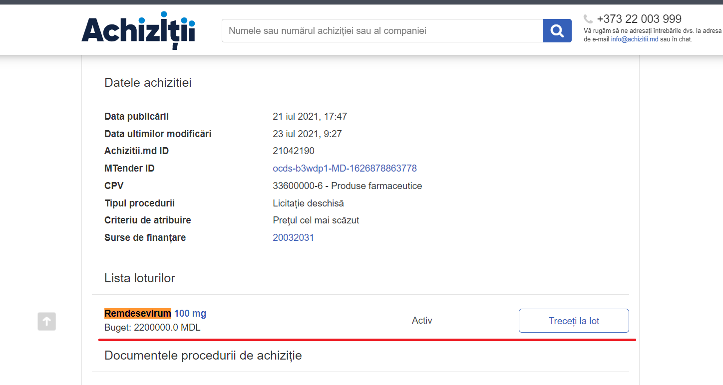 „În cazul altor achiții anterioare COVID, CAPCS a prelungit contractele. De exemplu, contractele de achiziție a combinezoanelor de protecție expirau la 31 decembrie 2020, dar termenul de valabilitate a fost prelungit, iar bunurile au fost livrare până în martie 2021. În cazul nostru, CAPCS a refuzat prelungirea și nu a motivat refuzul – nici în fapt, nici în drept; deși Codul Administrativ obligă autoritatea publică să motiveze în fapt și în drept deciziile adoptate. Astfel, refuzul CAPCS a fost emis cel puțin cu încălcarea normelor de procedură, iar noi am atacat refuzul în instanță. Cauza se află pe rol la Judecătoria Chișinău. În prezent, remdesivirul se află în depozitul nostru, însoțit de certificatul de calitate al seriei, dar nu poate fi livrat din cauza expirării termenului de valabilitate al contractului”.
