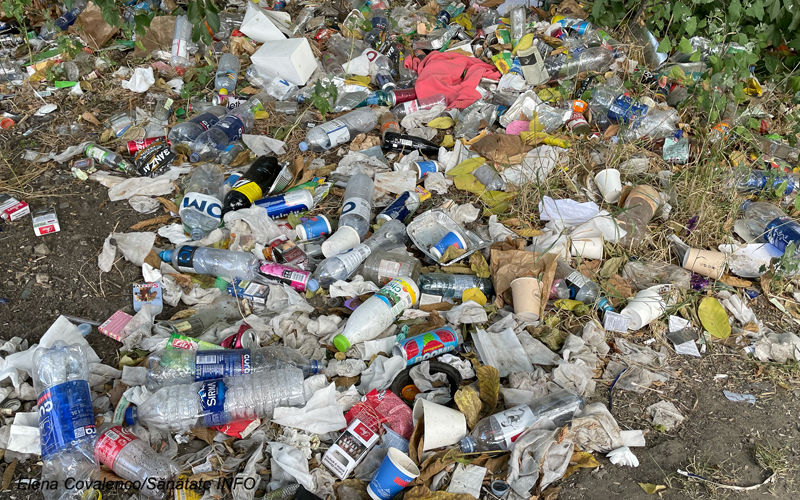 râul Bâc, iar printre copacii care cresc haotic sunt munți de gunoi. Pășim