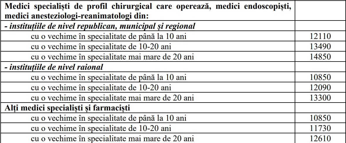 varia între 13540 de lei pentru un director, medic-șef sau șef de instituție medicală