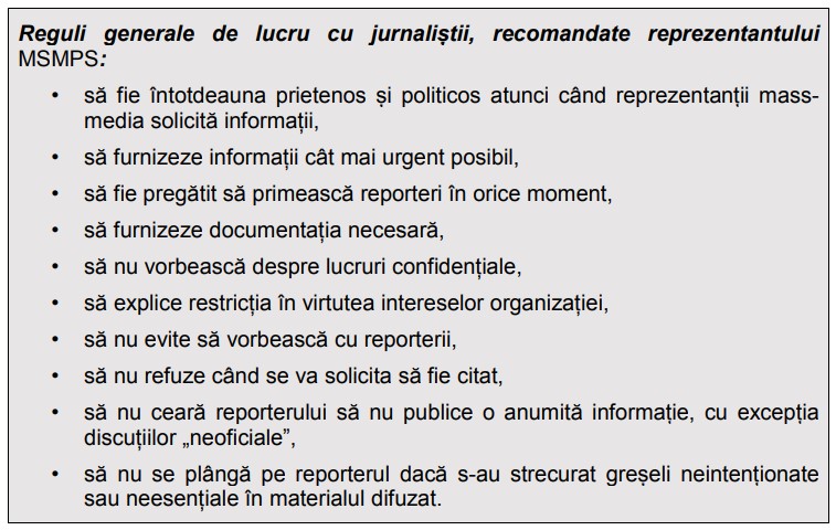 pentru îmbunătățirea comunicării cu instituțiile media.