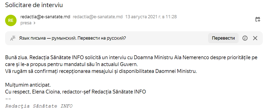 Mai mult, am trimis scrisoarea pe două adrese: una personală a șefei Serviciului de informare și comunicare cu mass-media și alta generală a serviciului. După apăsarea butonului „Send”, m-am înarmat cu răbdare conform procedurilor legale și curente.