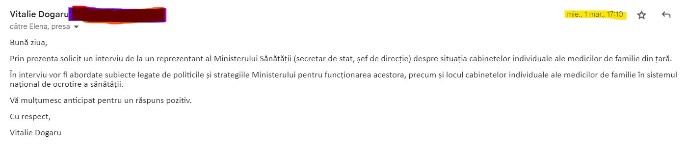 scrisori pe adresa Ministerului Sănătății în care „solicita respectuos furnizarea