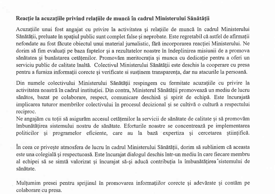 contra, „Ministerul Sănătății promovează un mediu de lucru sănătos, bazat pe