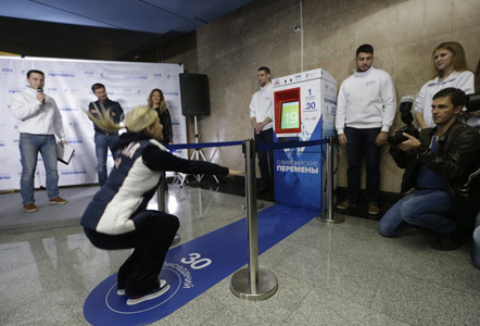 Prima care a testat terminalul este dubla campioană olimpică Elena Zamolodcicova. Sportivei i-a reușit ușor să facă cele 30 de așezări. De asta a primit cu zâmbetul pe buze și primul bilet de călătorie cu metroul. Cel de-al doilea bilet de călătorie i-a revenit unui membru al Comitetului Național Olimpic, iar cel de-al treilea, unei jurnaliste. „Orice om, chiar și fără pregătire fizică specială, poate face timp de două minute 30 de așezări”, este de părere Maria Chiseleova.