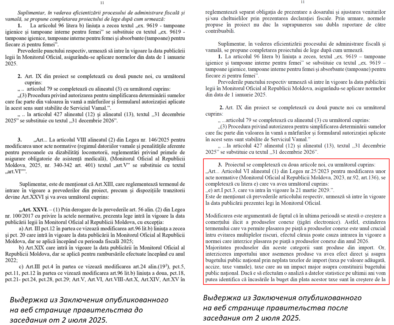 Особую озабоченность вызывает тот факт, что Заключение по поправкам к законопроекту о внесении изменений в Налоговый кодекс № 1163/1997 и другие нормативные акты (законодательная инициатива № 232 от 18 июня 2025 г.), опубликованное на веб-сайте Правительства перед заседанием 2 июля 2025 г., не содержало никаких ссылок на изменения, внесенные в Закон № 25/2023. На этом заседании Заключение было дополнительно включено в повестку дня по предложению представителя Министерства финансов, который не упомянул о включении спорных изменений.