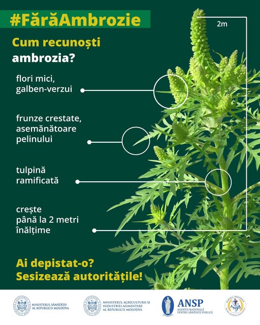 Ambrozia, numită și „iarba pârloagelor”, provoacă anual valuri de alergii în perioada august–septembrie, atunci când nivelul de polen atinge cote maxime. Tatiana Gorelco, șefa Secției Alergologie la Institutului Mamei și Copilului, atrage atenția că expunerea la polenul de ambrozie poate provoca strănuturi frecvente, secreții nazale și mâncărimi oculare, până la crize severe de astm bronșic, iar fără tratament, alergia poate evolua către complicații cornice.