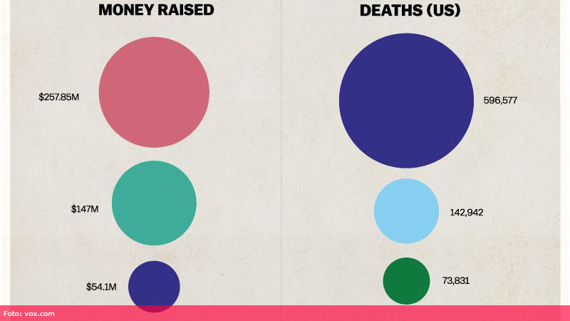 În tabel este prezentat raportul dintre fondurile colectate și decesele relatate ale acestei boli.