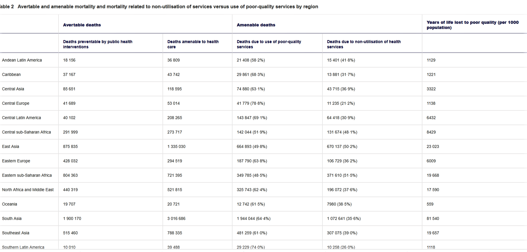Studiul „Mortality due to low-quality health systems in the universal health coverage era: a systematic analysis of amenable deaths in 137 countries” a fost publicat de The Lancet pe 5 septembrie 2018 și a fost realizat cu suportul Fundației Bill & Melinda Gates.