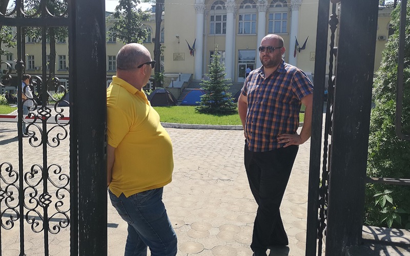 Nu știm exact câți oameni se află în ele, întrucât la poartă doi indivizi, dintre care unul s-a prezentat Vasea, nu ne-a permis să intrăm să discutăm cu protestatarii. Deși nu erau îmbrăcați în uniforme, bărbații ne-au spus că apără clădirea de cei care vor să uzurpeze puterea în stat. Iată ce am reușit să discutăm cu ei.