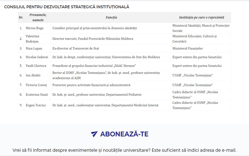 Ministerul Sănătății și-a schimbat reprezentantul în Consiliul de Dezvoltare Strategică Instituțională (CDSI) al Universității de Medicină și Farmacie „Nicolae Testemițanu”.