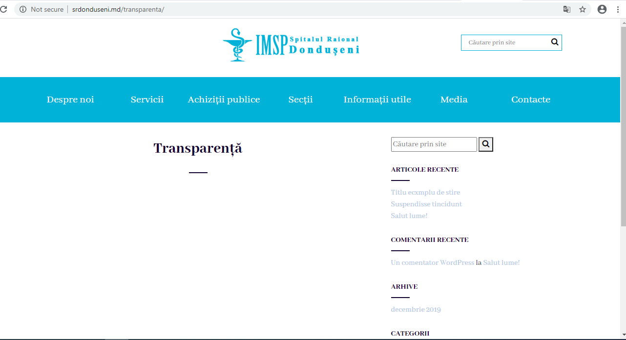 La rubrica Transparență, nici Spitalul Raional Râșcani nu avea publicat niciun contract când documentam materialul.