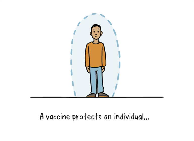 Вакцинированный человек с большей вероятностью защищен от соответствующей инфекции. Но не всем можно сделать прививки — люди с ослабленной иммунной системой, например, носители ВИЧ, либо люди с аллергией на компоненты вакцины не могут быть вакцинированы. Но этих людей можно защитить, если большинство вокруг будут привиты. Когда множество людей в обществе вакцинированы, патогену сложно распространяться, потому что большинство людей к нему уже невосприимчивы. Поэтому, чем больше людей будет привиты, тем меньше риск заболеть у тех, кому вакцина противопоказана — это и называется коллективным иммунитетом.