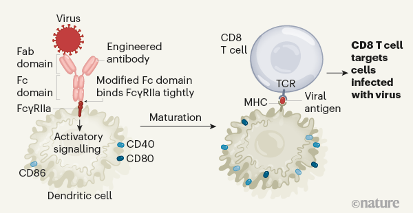 Într-adevăr, pentru mulți cercetători, provocarea a fost optimizarea domeniului Fab, dezvoltându-l pentru a servi ca o modalitate de etichetare a virusului și prevenirea intrării acestuia în celulă, oprind astfel transmiterea și replicarea virală. Cu toate acestea, studiile care utilizează diferite modele virale au arătat că domeniul Fc este necesar pentru terapia antivirală optimă (...)