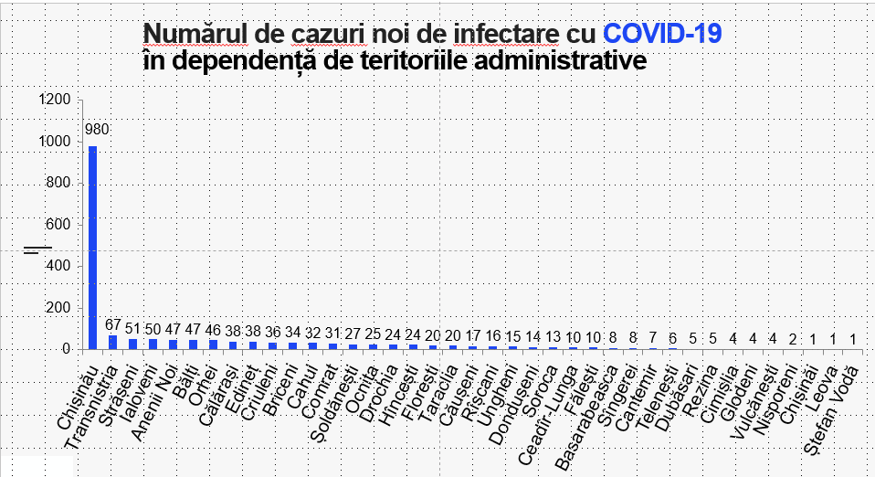 În total, în cadrul instituțiilor medico-sanitare spitalicești sunt internați 4.057 pacienți confirmați cu infecția COVID-19, dintre care 322 în stare extrem de gravă (65 pacienți sunt conectați la aparate de respirație asistată). În tratament la domiciliu cu forme ușoare și moderate de COVID-19 se află 11.130 de persoane, iar 17.524 sunt sub supraveghere la domiciliu.