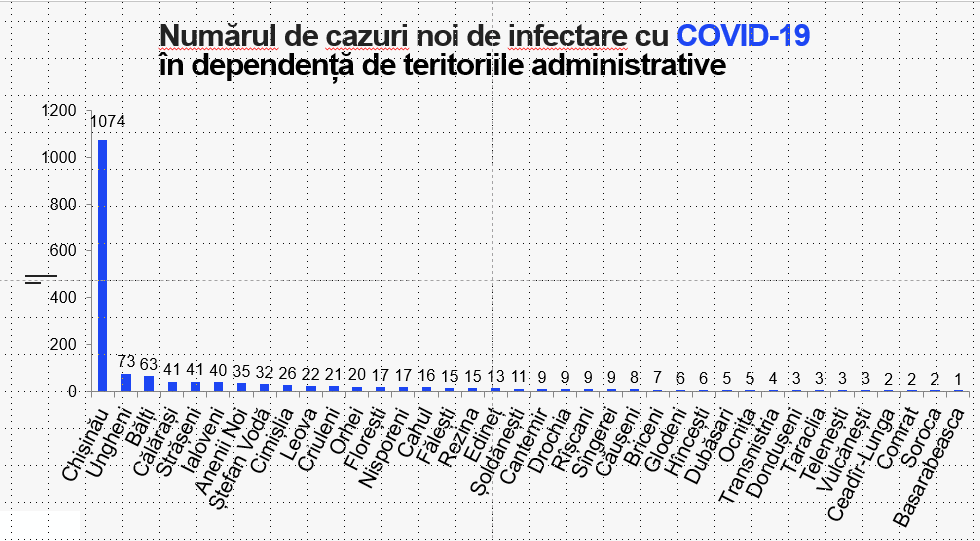 Din numărul total de cazuri, 72 sunt lucrători medicali: medici-15, asistenți medicali-43, personal auxiliar-14.