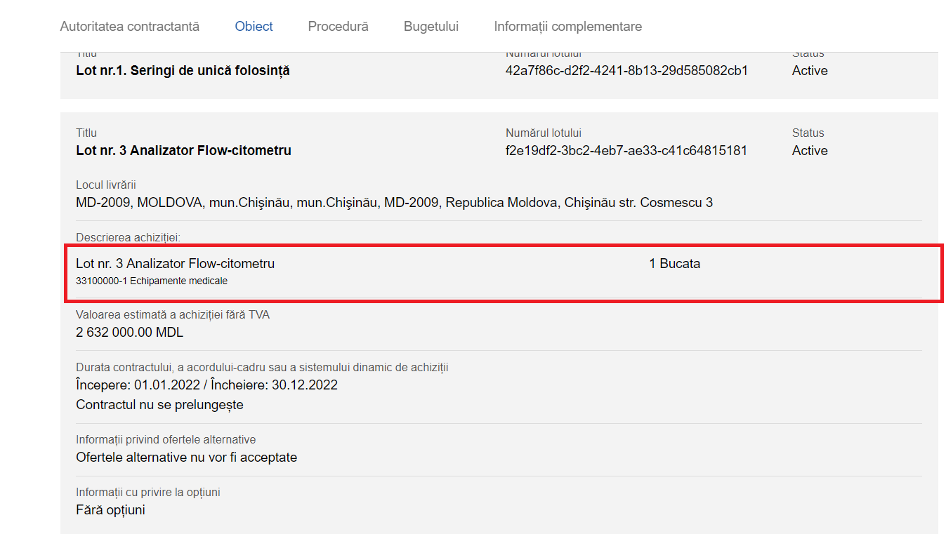 La nici 3 săptămâni de la publicarea articolului pe Sănătate INFO, a fost anunțată o licitație în cadrul Programului Naţional de control al cancerului pentru anul 2022 care include și procurarea unui flowcitometru. Valoarea estimativă a achiziției este de 2,6 milioane de lei fără TVA.