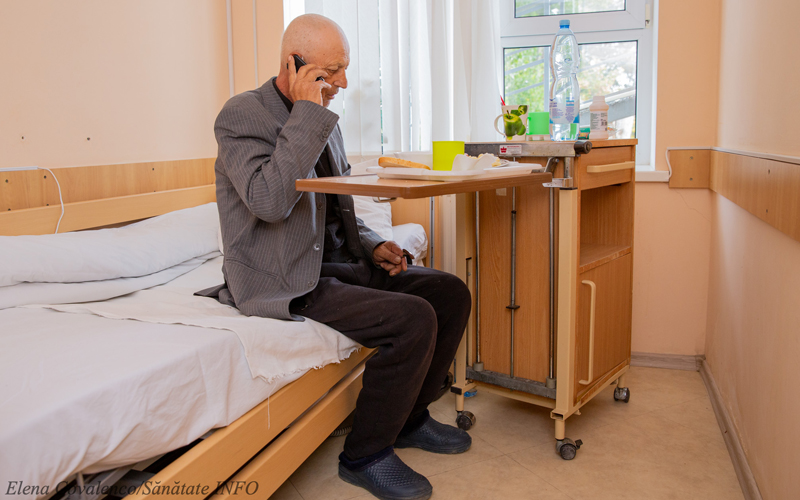 Dumitru are 64 de ani. Are cancer pulmonar cu mai multe metastaze, iar la sfârșitul lui octombrie are următoarea ședință de chimioterapie. Stă pe marginea patului și așteaptă ca infirmiera să-i aranjeze farfuriile cu prânzul cald pe măsuța mică de lângă pat. Chiar înainte să înceapă să mănânce îi sună telefonul.