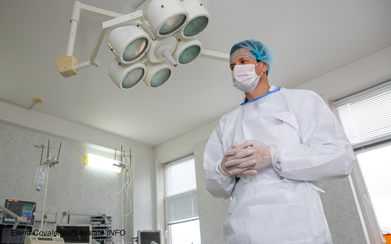 COVID, șefa secției, Doina Rusu îmbracă un halat chirurgical, steril.