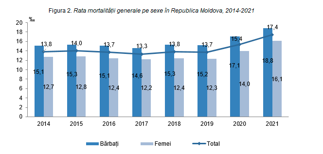 că, bărbații mor în număr mai mare decât femeile - 18,8‰ și respectiv 16,1‰. Totuși,