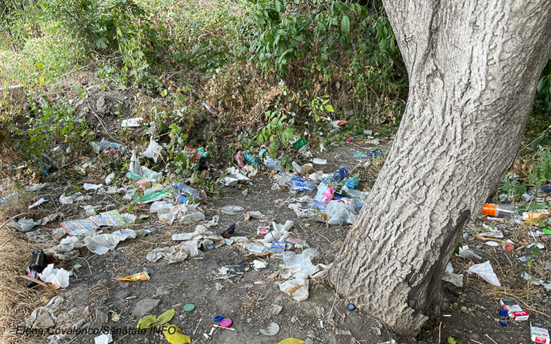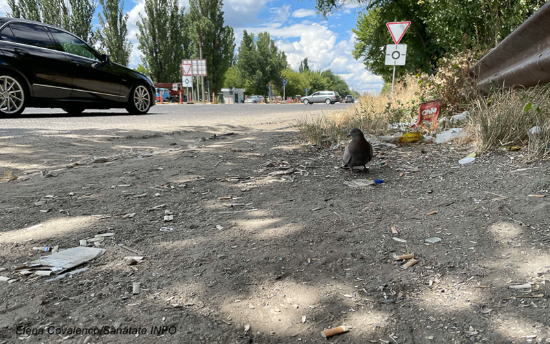 Malaia lângă un sens giratoriu pe malul râului Bâc, alături de un morman de