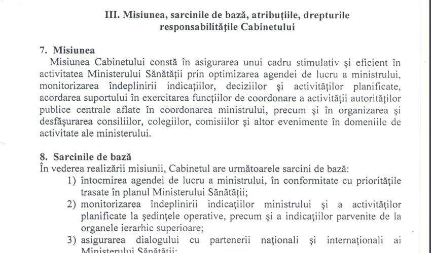 în Moldova pentru această funcție – de șef al Cabinetului ministrului Sănătății