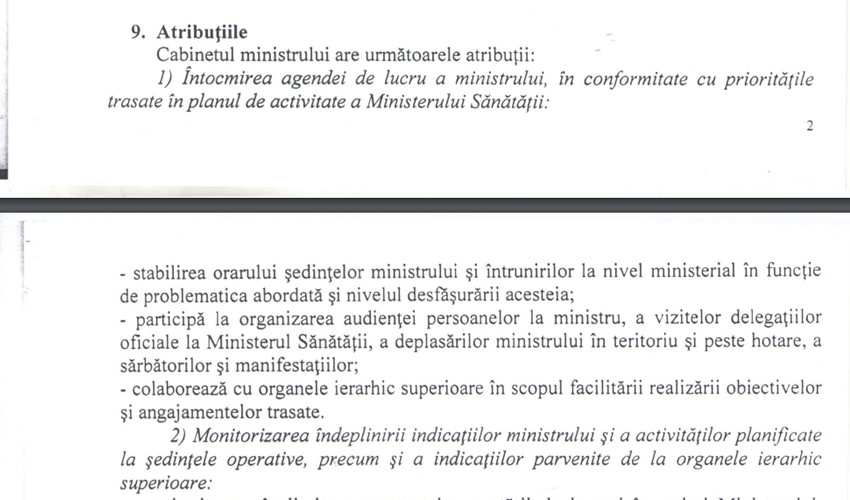 care vizează aparatul ministrei? Pentru că din regulamentul pentru funcția de