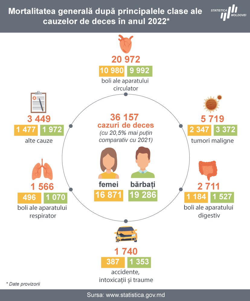 cauza maladiilor oncologice este în jur de 15 la sută. Capitala și UTA Găgăuzia