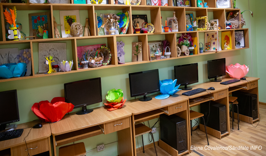 Copiii de la Centrul social primesc zilnic câte un prânz și sunt ajutați să-și facă temele pentru acasă. Aici au inclusiv calculatoare și acces la internet.