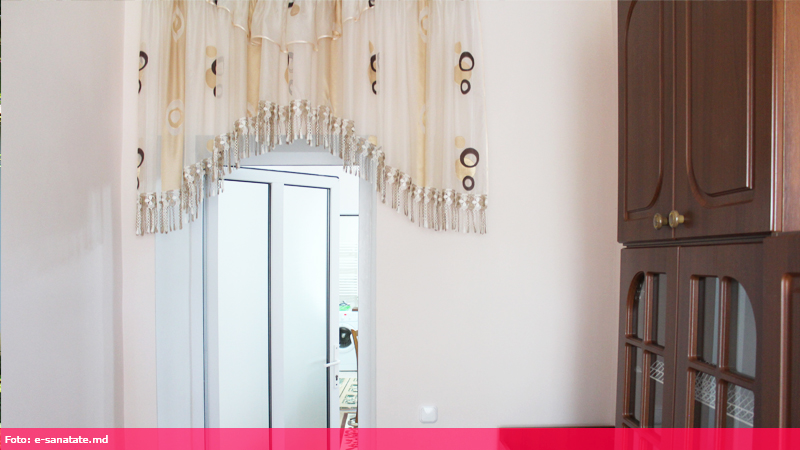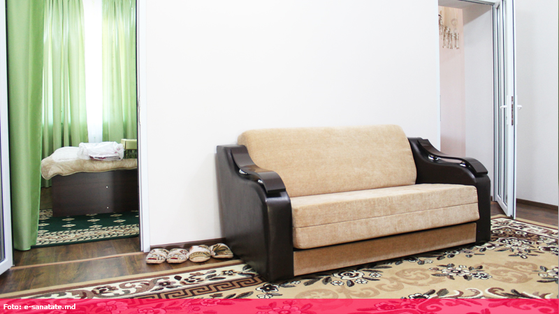 Intrarea a fost construită de la zero. Nu este mică - exact atât încât să încapă o garderobă pentru haine și un dulăpior pentru încălțăminte. Imediat după intrare urmează camera de zi, care deja este amenajată cu toate cele necesare – canapea, o masă rotundă și mai multe scaune „așa încât să ajungă și pentru oaspeți”, spune primărița satului. Următoarea cameră este dormitorul, care este amenajat în culoarea verde. Aici am găsit chiar și patul gătit, iar pe pat - un set de cearșafuri și stergare pentru găzdașii care ar vrea să muncească în sat.