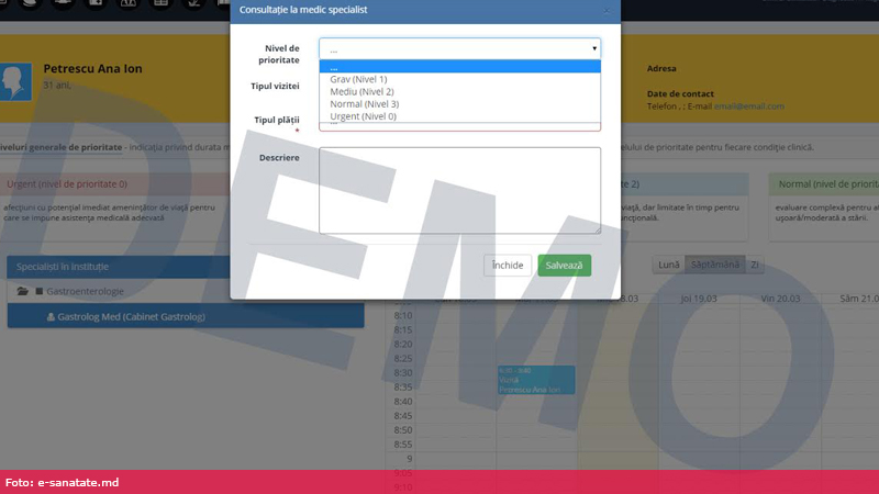 „Acestea nu sunt simple funcționalități, dar aplicații bazate pe practica și recomandările existente la nivel european. Astfel, aplicăm o clasificare a vizitelor în funcție de necesitățile pacientului reieșind din starea de sănătate a acestora. Mai mult, le oferim într-un format interactiv, prin aplicarea unui sistem de culori, de exemplu roșu are prioritate. În consecință, programarea pacienților în funcție de nivelul de prioritate a vizitei și tipul consultației în funcție de durată devine un exercițiu foarte eficace, condiție importantă în managementul instituției”, susține directorul Platformei E-Sănătate.MD.