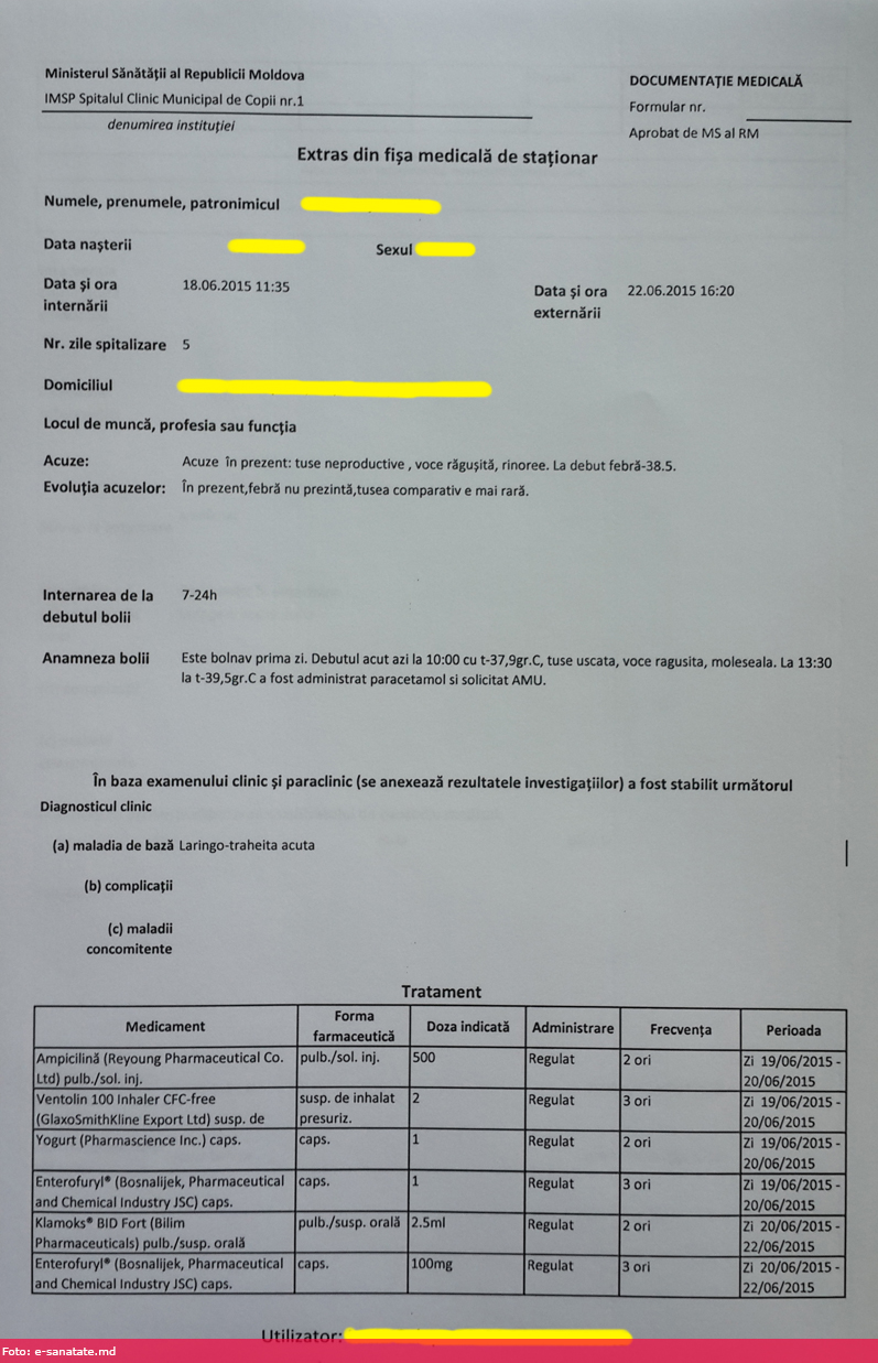 Astăzi aici a fost externat primul pacient, spitalizat, monitorizat și tratat prin intermediul Sistemului Informațional Integrat în Sănătate. Este vorba despre un băiat de doi ani, care a ajuns la spital pe data de 18 iunie, acuzând simptome precum febră, tuse uscată, etc. De la spitalizare, personalul medical a lucrat exclusiv prin intermediul SIIS, astfel că acum băiatul are un dosar electronic de sănătate, unde au fost transferate toate datele medicale legate de tratamentul său. Aici sunt incluse consultațiile medicale, analizele efectuate și rezultatele acestora, diagnosticul pus de medici, tratamentul acordat, dar și rezultatul acestuia. Toate aceste informații se regăsesc în documentația medicală a instituției, dar și în dosarul pacientului.