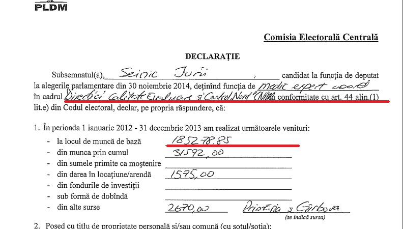 Iurie Șeinic, medic-expert în cadrul Direcției Evaluare și control în cadrul CNAM, Agenția Teritorială Nord, a aspirat și el la funcția de deputat pe lista PLDM. Acesta a ridicat de la CNAM în 2013 un salariu lunar de peste 15.000 de lei. Doctorul a mai declarat o locuință și un automobil Vaz.