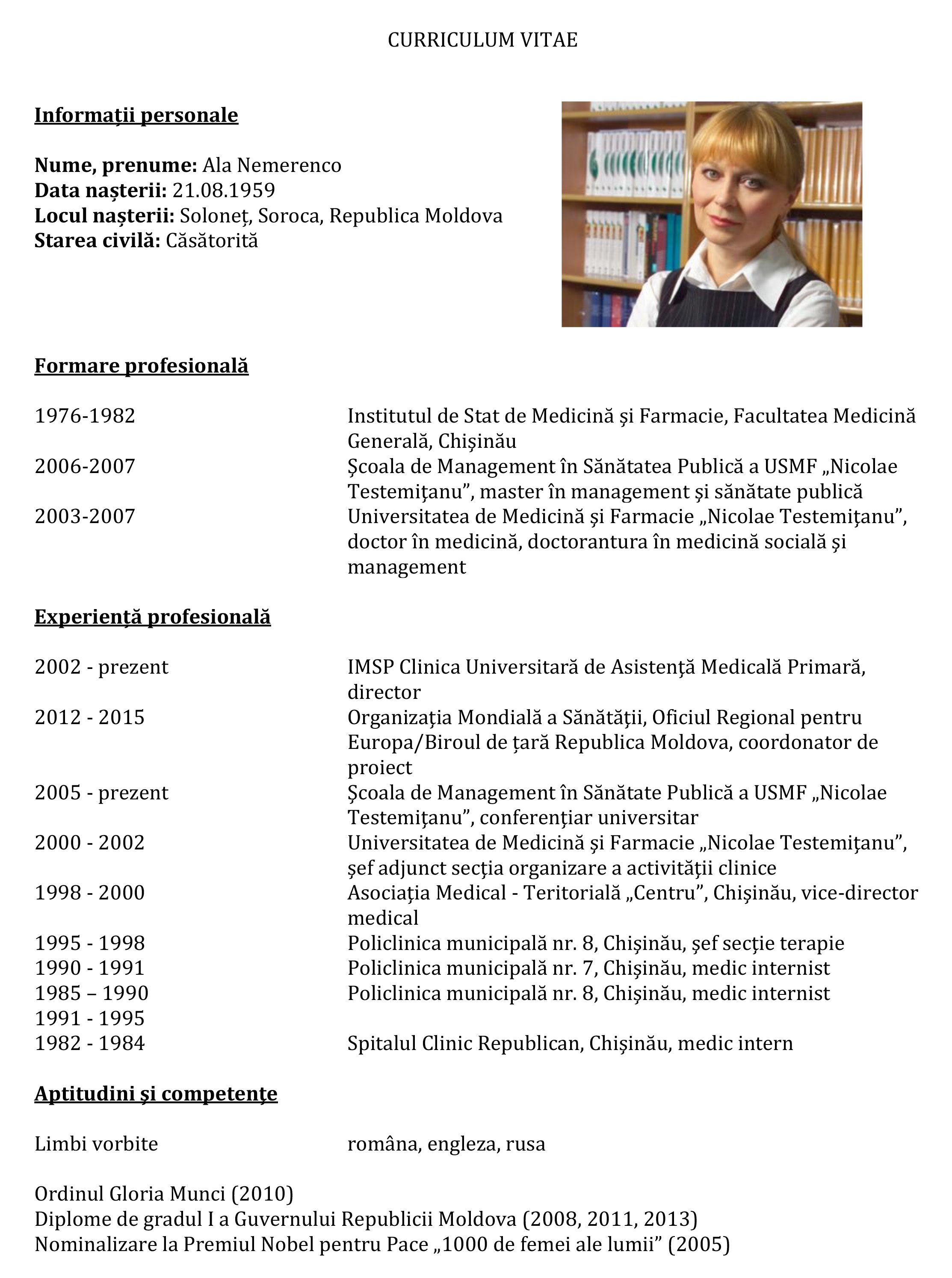 Toți candidații la funcția de miniștri, propuși de Ion Sturza, au semnat declarația de integritate. Printre acestia și Ala Nemerenco, propusă pentru fotoliul de ministru al Sănătății. De asemenea, au fost făcute publice CV-urile candidaților. De altfel, este pentru prima dată când sunt prezentate public toate CV-urile pretendenților la funcțiile de miniștri, înainte ca Guvernul să fie votat ori respins de Parlament. În viitorul Executiv ar urma să muncească 14 miniștri bărbați și patru miniștri femei.