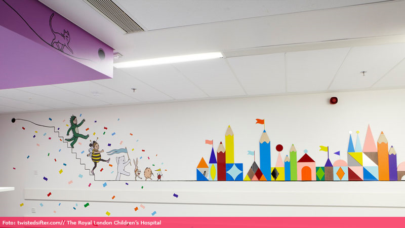 Vă prezentăm în continuare câteva imagini din spitalele din SUA și Marea Britanie, ce au reușit să transforme pereții albi și atmosfera apăsătoare într-un loc interactiv și prietenos.