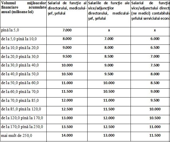 Adaosurile salariale vor fi stabilite în funcție de îndeplinirea indicatorilor de performanță. Acestea pot fi nelimitate, iar pentru plata lor se vor utiliza mijloace financiare în mărime de cel puţin 15 la sută din cheltuielile aferente plăţilor salariilor în sumă fixă. Salariile personalului medical mediu ar urma să fie de între 3.300 – 4.900 de lei, în funcție locul de muncă, dar și de vechimea în muncă. Și salariul managerilor ar urma crească, după aprobarea noului Regulament propus spre dezbateri publice. Lefurile acestora vor depinde însă de bugetul instituției pe care o conduc.