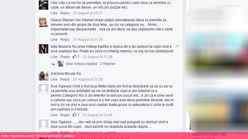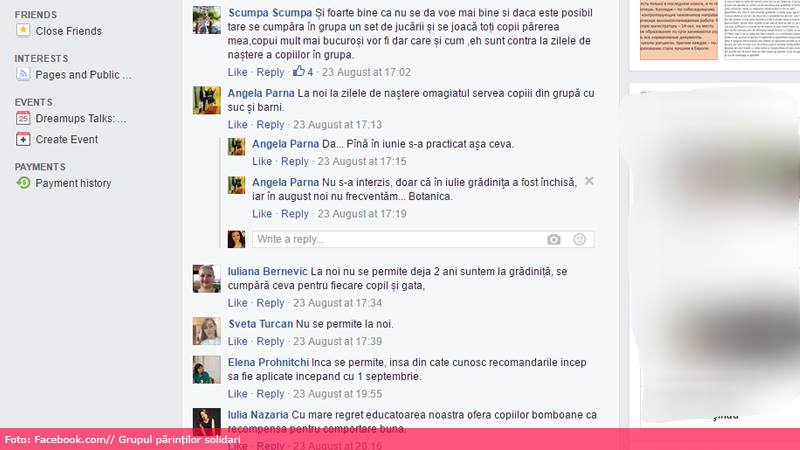 „La noi la grădiniță când sunt zile de naștere, omagiatul servește copiii din grupă cu suc și biscuiți”, afirmă un părinte pe Facebook. „Încă se permite, însă recomandările vor fi aplicate de la 1 septembrie”, a adăugat o altă mămică, Elena Prohnițchi.