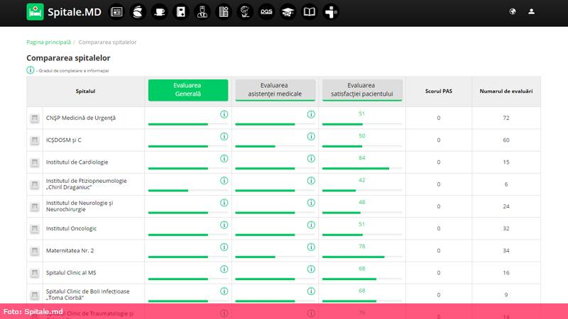 Portalul care permite evaluarea spitalelor din Moldova și oferă indici despre activitatea acestora