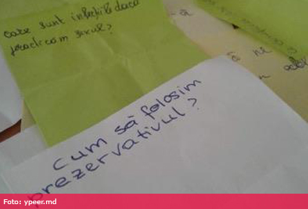 Ciclul menstrual e un mare păcat. „Visele umede” în timpul adolescenței sunt o anomalie, iar prezervativele sunt responsabilitatea băieților. Să fii agresiv e un atu, iar dacă iubitul îți propune o partidă de sex, e bine să accepți, altfel te va părăsi. Sunt doar câteva dintre miturile pe care le au cei mai mulți adolescenți din Moldova, pe care școala, societatea, îi pregătește pentru orice, numai nu pentru viață. Și chiar dacă pe elevi îi frământă astfel de întrebări, atunci cei în ale căror responsabilități intră educația, inclusiv cea sexuală, își caută alte priorități. În consecință, puțini copii ajung ulterior să înțeleagă prin ce schimbări au trecut în adolescență. Răspunsul e simplu – nimeni nu le explică pe îndelete și pe înțelesul lor lucruri firești. În consecință, creștem generații de oameni nepregătiți să facă față provocărilor sociale. Întreaga situație a motivat o rețea de tineri să facă un experiment. Timp de aproape un trimestru ei au predat în două școli din țară un curs de educație sexuală. Un curs pentru care elevii stăteau peste program și dacă ar mai fi avut timp, l-ar fi dedicat cu plăcere. Ce au fost curioși ei să afle, de ce s-au arătat atât de interesați de un obiect blamat, acum un deceniu, de părinți și Biserică. Am discutat cu inițiatoarea acestui curs de educație sexuală, Ana Susarenco, tot ea unul dintre fondatorii rețelei de educatori de la egal la egal Y-PEER Moldova.