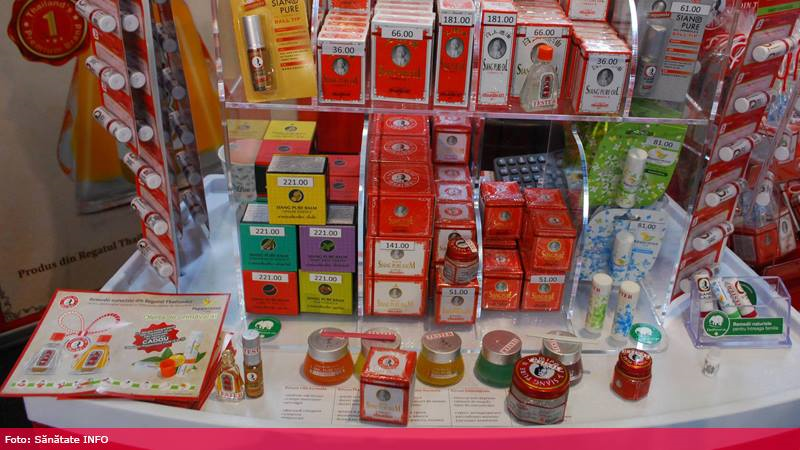Dacă sunteți împătimiți ai uleiurilor terapeutice la expoziție puteți găsi un produs inovativ adus tocmai din Regatul Thailandei, Uleiul siang Pure devenit un remediu universal pentru ameliorarea mai multor stări de disconfort este cadoul excelent pentru soțiile sau mamele voastre. Acesta poate fi utilizat în afecțiunile însoțite de dureri de cap, dureri musculare, dureri de stomac, dar și în urma mușcăturilor de insecte. Tot de pe meleaguri thailandeze a fost adus inhalatorul Peppermint Field 2 în 1, care poate fi utilizat în afecțiuni respiratorii și care blochează răspândirea virozelor.