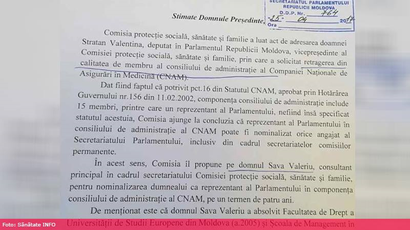 Amintim că Valentina Stratan, care deține funcția de vicepreședinte al Comisiei Protecție Socială, Sănătate și Familie, a demisionat din consiliul de Administrare al CNAM la sfârșitul lunii martie, la recomandarea Comisiei Naționale de Integritate.