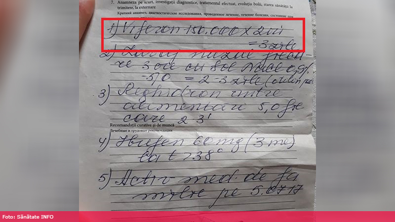 „Medicul mi-a zis că din 1 iulie acest medicament deja nu se mai prescrie gratuit. Și mi-a cerut foița cu tratamentul indicat de specialiștii de la spital. Eu însă nu i-am lăsat-o, deoarece în baza ei trebuia să procur medicamentele”, adaugă Doina. Deoarece a rămas nelămurită, Doina a sunat-o a doua zi pe șefa instituției să vadă ce se întâmplă. „Ea a spus că medicul are dreptate. Am decis să verific și la Linia Verde a Companiei Naționale de Asigurări în Medicină, de unde am aflat că Viferonul se prescrie în continuare gratuit”, spune Doina.