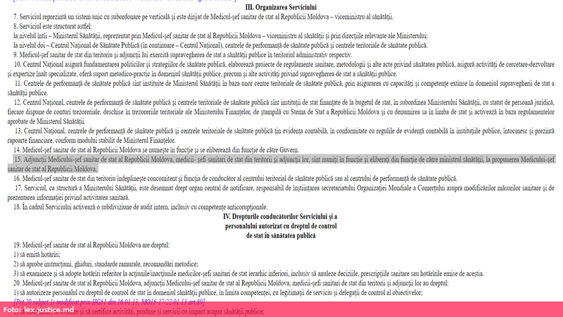 „Conform legii orice medic-șef sanitar de stat adjunct se numește și se destituie obligatoriu la propunerea medicului-șef sanitar de stat a țării. Dacă această numire sau destituire a fost făcută fără să existe o propunere din partea acestuia, juridic ea nu este valabilă. Altfel documentul este ilegal. În acest caz înțeleg că nu s-a cerut nici măcar semnătura nemaivorbind de o recomandare”.