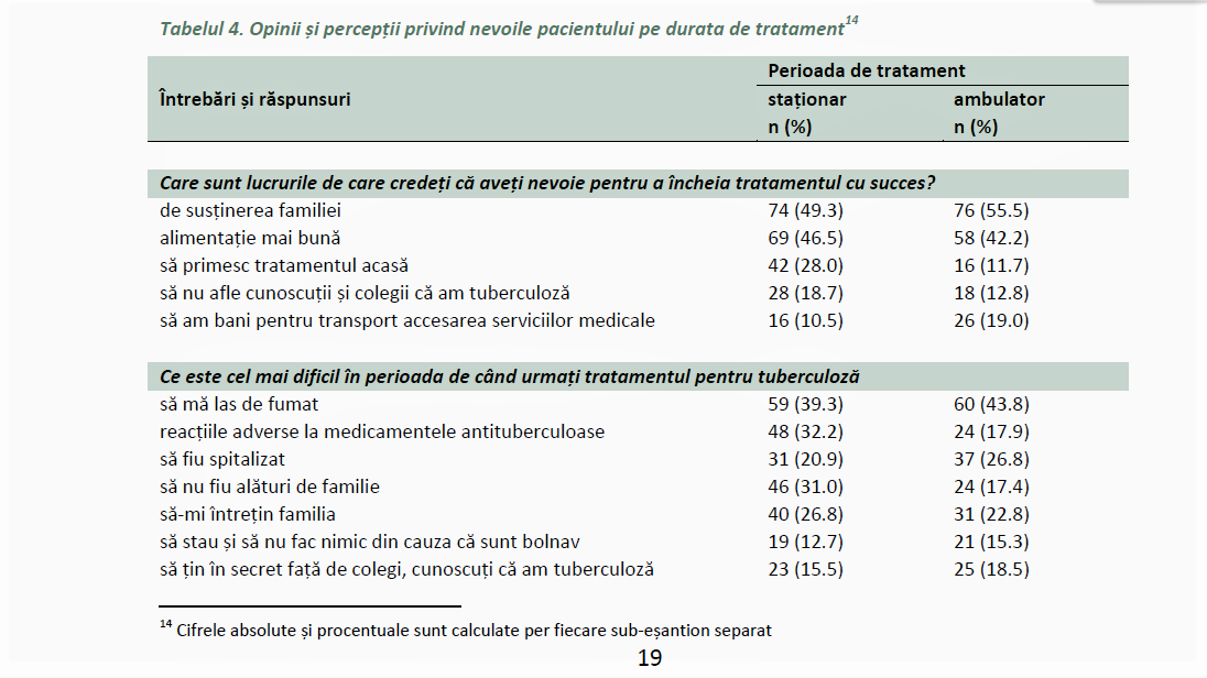 „Cu toate că Programul național de control al tuberculozei prevede acces universal la diagnosticul și tratamentul tuberculozei în Republica Moldova pacienții întâmpină blocaje în accesarea serviciilor și îngrijirilor medicale cu cheltuieli reflectate ulterior în pierderi economice ale famiilor pacienților. Datele analizate în prezentul studiu au dovedit că gospodăriile au suportat cheltuieli în legătură cu tuberculoză, în timp ce veniturile acestora s-au redus, ceea ce confirmă situația de capcană a sărăciei medicale”, concluzionează autorii studiului.