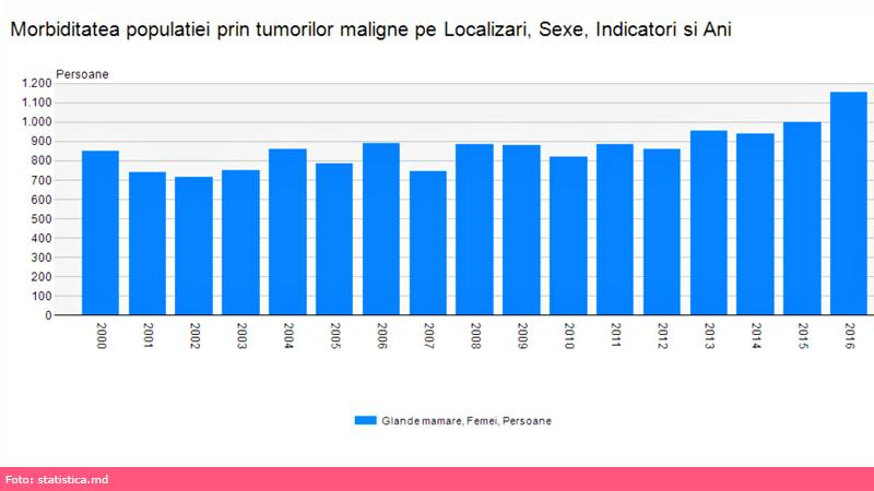 Diagnosticul de cancer mamar este stabilit în Moldova tot mai frecvent, cu fiecare an. Din anul 2000 și până astăzi cifra a crescut, deși în 2001, 2003, 2007 s-au observat scăderi nesemnificative. Astfel, în anul 2000 erau depistate 849 de cazuri, în 2005 – 783 de cazuri, în 2010 – 820, crescând constant până la 1.156 până în 2016. După cancerul colorectal, cel mamar este cel mai întâlnit tip.