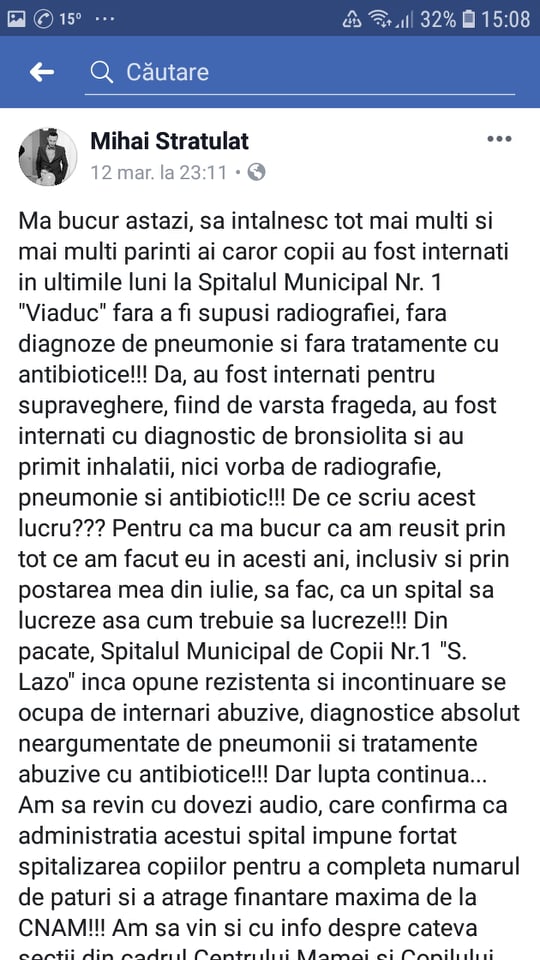 neonatologul Mihai Stratulat afirma că Spitalul Municipal de Copii nr.1 ar