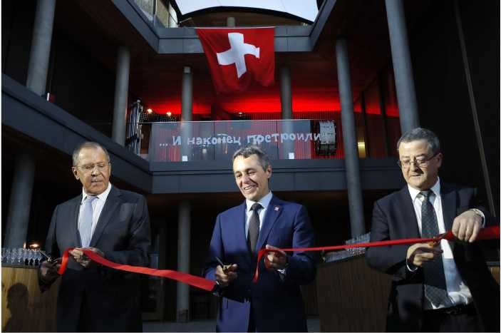 său rus Sergey Lavrov (stânga) și ambasadorul Yves Rossier, deschid biroul